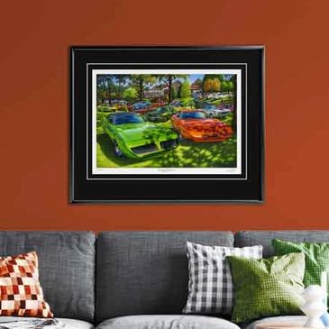 Artist Michael Irvine has a passion for the automobile that started in his childhood. He has chosen to focus his natural artistic talent, and years of training, on capturing American muscle and sports cars in vibrant, high impact watercolor. Michael's unique approach to this traditionally 'loose' medium, and ardent eye for detail produces crisp, sharp images that are alive with color and narration. He uses reflective surfaces and ‘hidden’ images, along with his incredible attention to technical accuracy, making his car art paintings highly captivating. His goal is to draw the viewer into the scene while slowly revealing more of the story before them. Incredibly detailed, powerful, imaginative and creative, the surrealism of Michael's work invites you to join him in a journey of discovery.
